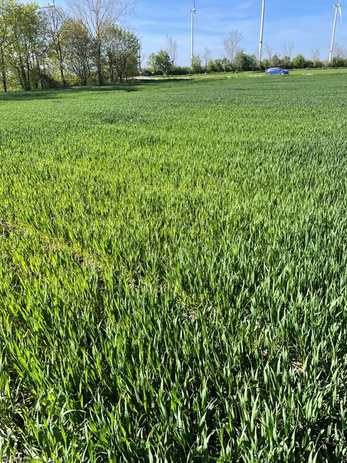 Sehr deutlich wird die Nullparzelle im Raps. Hier wurde aber nicht auf die Wirksamkeit der N-Düngung getestet, sondern auf den Verzicht der Unterfußdüngung mit Phosphor und Kalium im Herbst im Vergleich zur Restfläche. Ich denke diese Bilder zeigen deutlich, wie wichtig eine ausgewogene Pflanzenernährung ist.