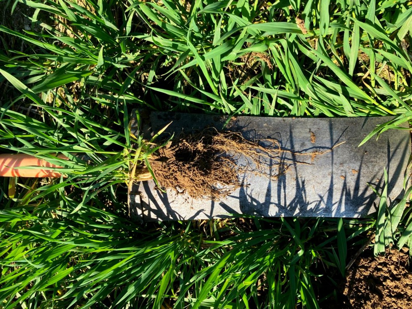 Aber auch Wintergetreidebestände wurden bereits von Tag zu Tag grauer, wobei hier keinesfalls von Trockenstress gesprochen werden kann. Es war zu jeder Zeit ausreichend Wasser im Boden. Gerste und Roggen befanden sich in der letzten Woche im BBCH-Stadium 31 und die Wachstumsregulation steht bevor. Weizen und Triticale erreichten erst BBCH 30. Was alle Getreidebestände gemeinsam haben, sind die exzellenten Wurzeln, welche sich als Reaktion auf die frühe Trockenheit gebildet haben.