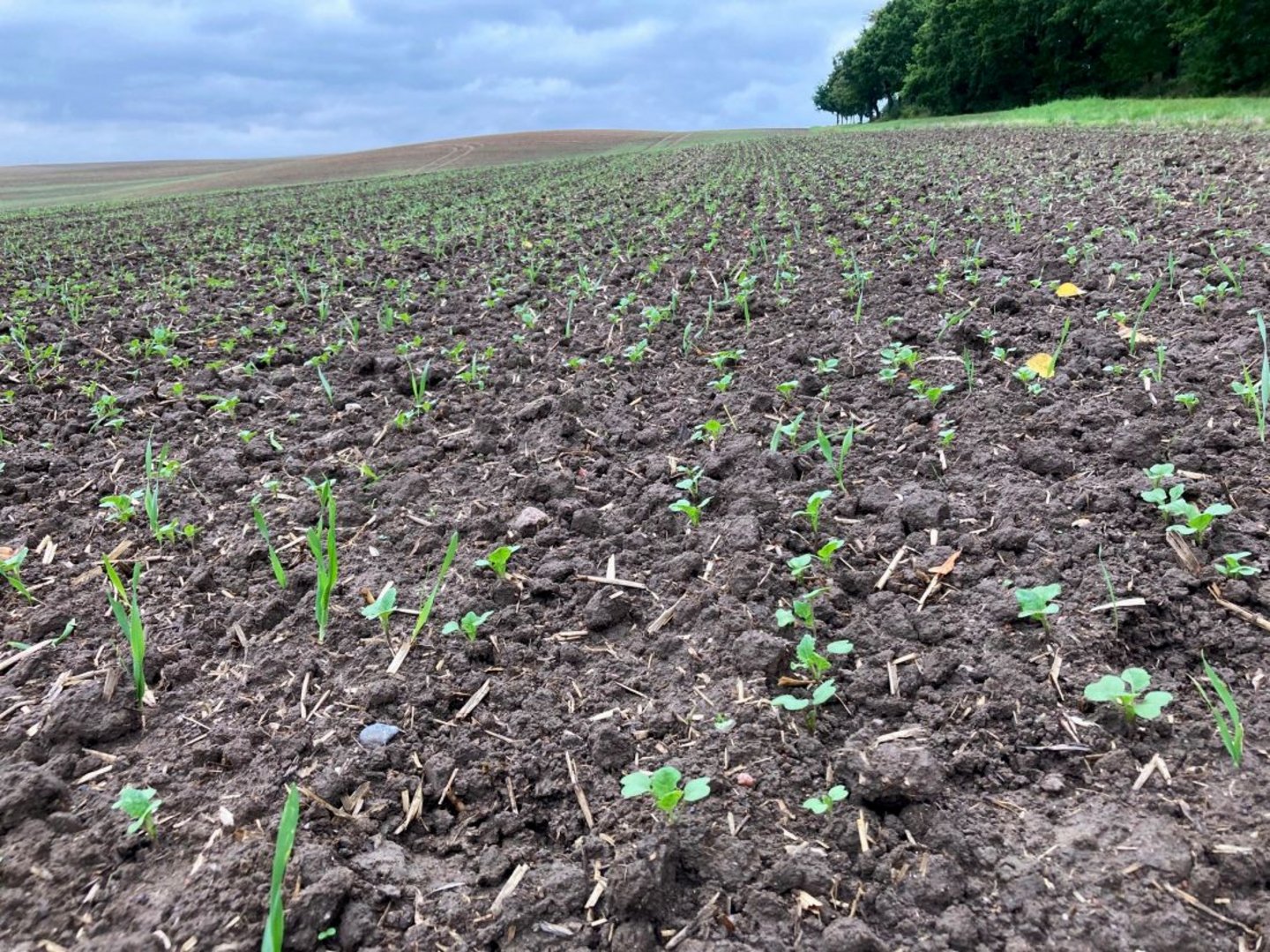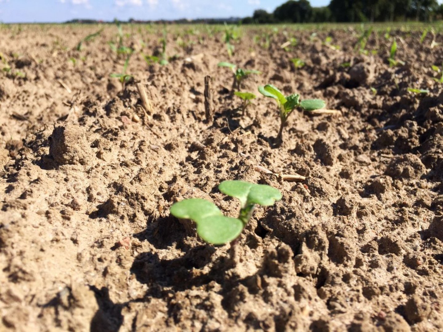 Für den in den recht trockenen Boden bestellten Winterraps zählt aktuell jeder Liter Niederschlag für eine optimale Herbstentwicklung.