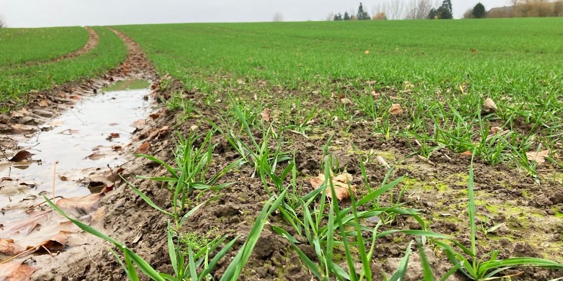 Nach den teils ergiebigen Niederschlägen der letzten Wochen sind die schweren Böden mittlerweile wassergesättigt und vielerorts steht das Wasser in den Fahrspuren.
