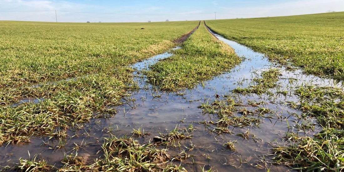 Mit den milderen Temperaturen sind am Wochenende auch die letzten Schneereste abgeschmolzen. Da die Böden regional noch bis zu einer Tiefe von 50 bis 60 cm gefroren sind, steht vielerorts das Wasser auf den Feldern und sammelt sich besonders in den Senken und den Fahrspuren.