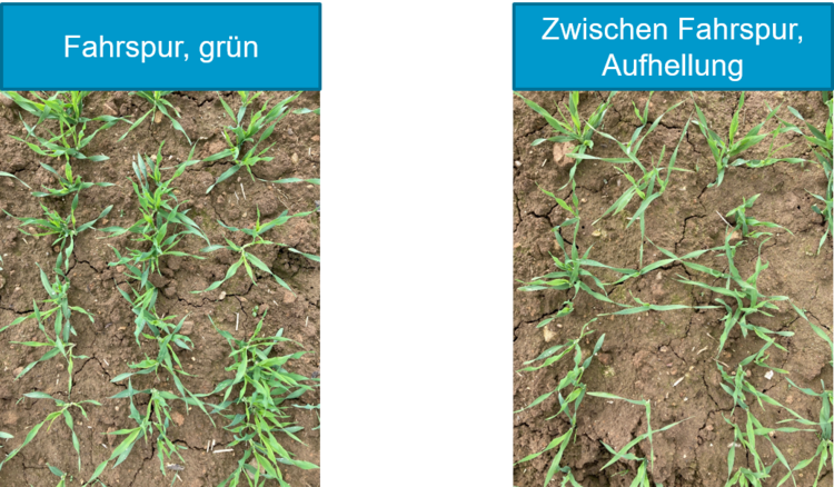 Aktuell fallen einige Sommergerstenbestände durch eine ungleichmäßige Färbung auf. Bei einem genaueren Blick in die Bestände sieht man, dass die Fahrspuren dunkler als die unbefahrenen Bereiche sind. Dieses Bild ist ein eindeutiger Hinweis auf einen Mangel des Spurennährstoffs Mangan. Die Pflanzen nehmen ihn vor allem als Mn²+ -Ionen aus der Bodenlösung auf. Ein Mangel äußert sich meist als Flecken- bis Streifenchlorose in der Mitte der jüngeren Blätter. Letztendlich führt dieser Mangel zu Mindererträgen.