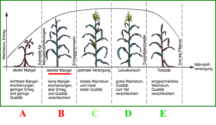 Besonders bei locker liegenden Böden gerät der Spurennährstoff schnell in einen Mangelzustand. Meist findet das im Zusammenspiel mit abnehmender Bodenfeuchte statt. Aber auch ein hoher pH-Wert, der etwa durch eine überzogene Kalkung entstanden ist, kann Auslöser dafür sein. Tritt unter den aktuell feuchten Bedingungen ein solcher Mangel auf, deutet das auf einen zu hohen pH-Wert hin. Zur Kontrolle der Ursache kann ein Indikationstest zur Bestimmung des pH-Wertes gemacht werden. Dafür bietet sich z.B. der „HELLIGE-Boden-PEHAMETER“ an.