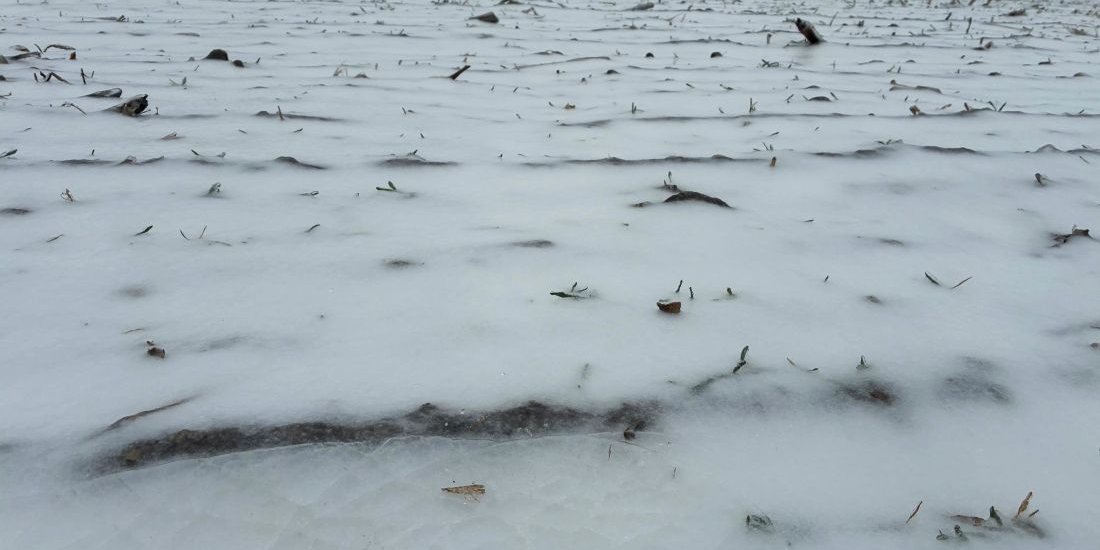Mit dem Blick auf das Wettergeschehen kann man behaupten „im Osten nichts Neues“. Einsetzender leichter Schneefall und anschließender Regen haben die Eisschicht auf Feld und Flur erneuert.
