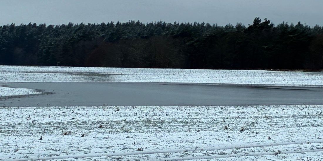 Das Winterwetter in unserer Region lässt noch keinen Gedanken an einen möglichen Düngetermin zu. Leichter Regen und Schneefall bilden auf den gefrorenen Böden riesige Pfützen in den Senken und füllt die Sölle.
