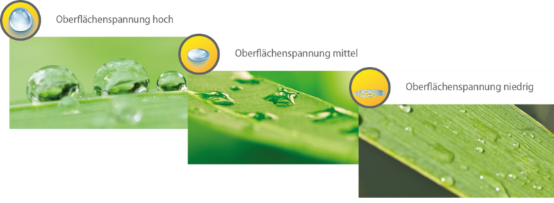 Unsere Flüssigdünger verfügen über eine hohe Oberflächenspannung zwischen 60 bis 80 mN/m. Dadurch wird eine große kompakte Tröpfchengröße garantiert. Diese Tröpfchen rollen problemlos von den Blättern und den Stängeln des Getreides ab. Die Pflanzen werden nicht benetzt und es entstehen dadurch keine Verätzungen.