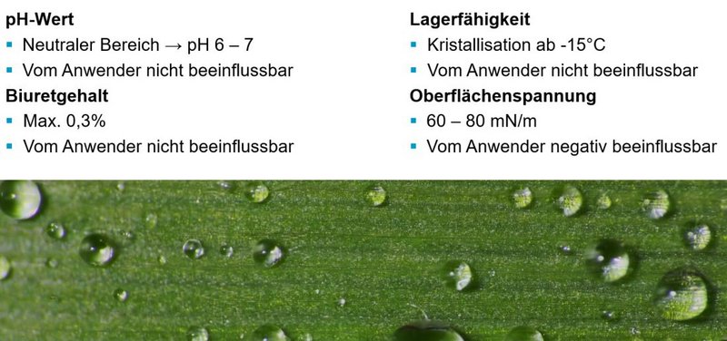 Bei Tankmischungen von puren Flüssigdüngern mit Pflanzenschutzmitteln, Mikronährstoffdüngern oder anderen Flüssigdüngern kontaktieren Sie die Pflanzenschutzmittel- bzw. Düngemittelhersteller hinsichtlich physikalischer Mischbarkeit und Pflanzenverträglichkeit.