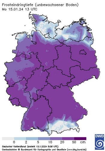 Gegenwärtig herrscht Vegetationsruhe. Die kalte Witterung hat alles fest im Griff. Laut Deutschem Wetterdienst herrscht bis in 20 cm Bodentiefe Frost. Zum Glück ist in den meisten Regionen eine Schneedecke vorhanden. Somit sind alle Kulturen geschützt.