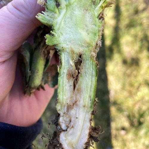 Um die Bedürftigkeit zu kontrollieren schneidet man idealerweise eine Rapspflanze auf und prüft den Vegetationskegel. Ist dieser hohl beziehungsweise leicht bräunlich gefärbt, handelt es sich um Bormangel. Um Sieb- und Feinzellen zu produzieren ist Bor ein wichtiger Baustein. Warum ist Bor so ein wichtiges Spurenelement? Bor unterliegt der Auswaschung mit durchschnittlich 150 g im Jahr und Gülle mit nur 2 g/m3 deckt den Düngungsbedarf nicht ab. Raps, Rübe und Mais als Bor liebende Früchte entziehen ca. 400 bis 500 g Bor pro Jahr. Somit sollte mit Bor-Einzeldünger beziehungsweise mit gut aufgeladenen Mehrnährstoffdünger gearbeitet werden, um auch die ausreichende Konzentration auf das Feld zu bringen.