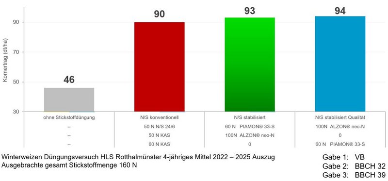 Die Variationskoeffizienten für ALZON® neo-N und PIAMON® 33-S liegen im Mittel der Streuversuche um fünf Prozent und zeigen eine gute bis sehr gute Querverteilung. Wichtige Einflussgrößen zur guten Querverteilung der granulierten Düngemittel sind die Oberflächenbeschaffenheit, Korngrößenverteilung, Kornfestigkeit, Dichte und Feuchtigkeitsgehalt.