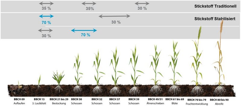 Die Böden sind jetzt sehr gut abgetrocknet und sehr gut befahrbar. Somit wird jetzt auch fleißig gedüngt. Kombinationen mit Gülle und Mineraldünger sind zu empfehlen. Hier kommen unsere Qualitätsprodukte ALZON® neo-N und PIADIN® ins Spiel. Weiterhin sind Witterungsextreme nicht auszuschließen und Nitrifikationsinhibitoren können so als Stickstoffversicherung dienen, ähnlich zu betrachten wie eine Hagelversicherung, so dass Stickstoff zum richtigen Zeitpunkt am richtigen Ort ist. Mit stabilisierten Düngern ist keine Stickstoffauswaschung zu erwarten, dadurch ist eine Andüngung zu Vegetationsbeginn mit ALZON® neo-N sogar von Vorteil.