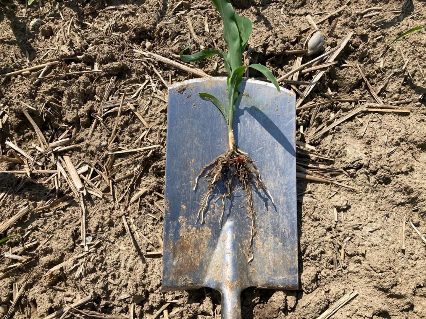 Die Länge der Hauptwurzel der Maispflanze beträgt trotz der Witterung schon über 15 cm. Aber trotzdem sollte man wärme Temperaturen zur Maisherbizid-Behandlung anstreben. Der Mais kann bei sehr kühlen Nachttemperaturen die Herbizide schlecht abbauen beziehungsweise verarbeiten. Mein ehemaliger Schulleiter meinte immer „Maisspritzen nur, wenn man im T-Shirt rausgehen kann“. Wirkstoffe können aber bis zum 4-Blattstadium durch eine bessere Wachsschicht gut verarbeitet werden. Nachdüngung mit ALZON® neo-N oder PIAGRAN® pro ist möglich, man sollte aber nicht mehr zu lange warten. Je großer der Mais wächst, umso anfälliger wird er und es könnte leichte Blattveränderungen kommen.