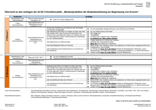 Die neuen Regelungen und Einstufung der Flächen, die sich aus der neuen bayrischen ESchV ergeben, gelten ab der Ernte der Hauptfrucht 2023, für die darauffolgende Vorbereitung und Aussaat der Kulturen und Zwischenfrüchte auf den betroffenen Flächen.