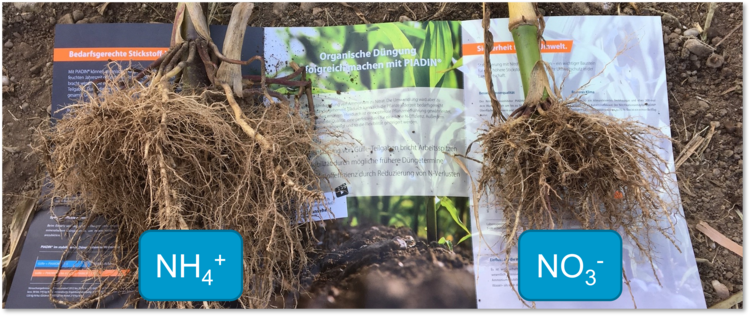 Nach der Ausbringung von Wirtschaftsdüngern wandelt sich der enthaltene Ammoniumstickstoff abhängig von der Bodentemperatur relativ zügig und fast vollständig zu Nitratstickstoff um. Dieser kann zwar von der Pflanze aufgenommen, aber auch ins Grundwasser ausgewaschen werden oder durch die Veratmung von Mikroorganismen gasförmig in die Atmosphäre entweichen. Die sogenannte Denitrifikation. Solche Stickstoffverluste können durch die Zugabe von PIADIN® in Gülle und Gärresten erheblich reduziert werden. PIADIN® entfaltet als Nitrifikationsinhibitor unmittelbar nach der Düngung seine Wirkung, indem es den Umbau von Ammonium- zu Nitratstickstoff im Boden um das vier bis sechsfache verlangsamt. So steht der Stickstoff aus den Wirtschaftsdüngern über einen längeren Zeitraum im Boden als Ammoniumstickstoff zur Verfügung, welcher weder ausgewaschen noch denitrifiziert werden kann. Weiterhin kann der Ammoniumstickstoff bedarfsgerecht von der Pflanze aufgenommen und so ein Überwachsen der Pflanzen unterbunden werden. Zudem wird durch die Ammoniumernährung das Feinwurzelwachstum der Pflanze gefördert, was zu einer besseren Verfügbarkeit von Phosphor und Mikronährstoffen und einem höheren Stickstoffentzug aus dem Boden führt.