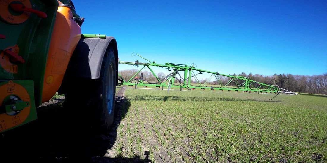 Der Richtwert 200 °C-Temperatursumme sollte erreicht sein. Daher sollte im Grünland die mineralische Stickstoffgabe für den ersten Schnitt zeitnah ausgebracht werden. Die überwiegend guten Witterungsbedingungen erlauben, dass Flüssigdünger problemlos appliziert werden kann. Seine Stärken spielt der Flüssigdünger im Grünland mit seiner randscharfen Applikationstechnik aus. Schleuderstreuer können den äußeren Rand nur unzureichend ausdüngen. Bei Abständen von einer Grüppe zur nächsten von 24 oder 30 Metern und rund geschobenem Geländeprofil ist es nicht möglich, mit überlappenden Streubildern zu arbeiten. Bei Flüssigdünger ist das überhaupt kein Problem, denn aus jeder Flüssigdüngerdüse kommt die gleiche Menge und wird gleichmäßig in 50-Zenitmeter-Abschnitten verteilt.