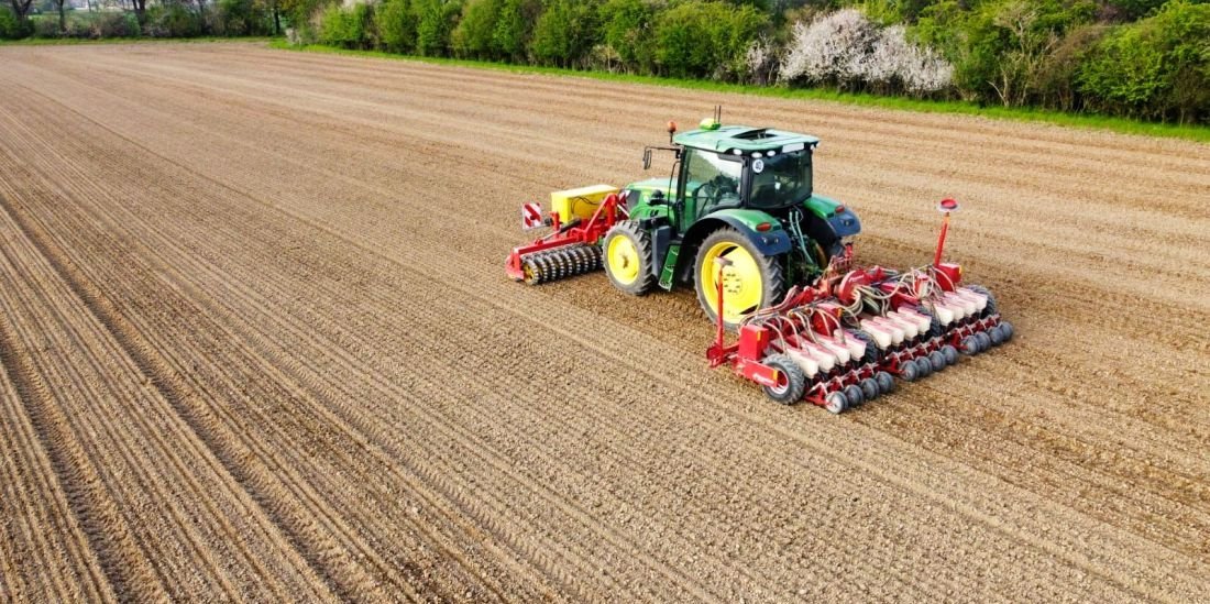 Die Ansprüche an das Saatbeet sind aufgrund der geringen Konkurrenzkraft und Widerstandskraft der Zwiebel gegenüber Unkräutern und Herbiziden sehr hoch. Um wenig Spritzschatten zu erzeugen, ist ein fein krümeliges Saatbeet zu erstellen. Dieses darf keine Verschmierungen und Verdichtungen bspw. von Schlepperspuren aufweisen. Gleichzeitig muss das Saatbeet horizontal sehr gut und gleichmäßig rückverfestigt werden, sodass es möglich ist das feine Zwiebelsaatgut in einem Saathorizont von 1,8 cm bis 2,2 cm auszusäen. Die Aussaat erfolgt mit einer Feinsaatmaschine (siehe Abbildung 3).