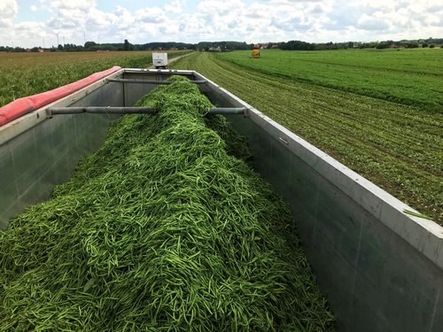 Spätinfektionen durch Pilze, wie zum Beispiel Sklerotinia-Fäule oder Grauschimmel, stellen beim Anbau von Buschbohnen eine große Gefahr dar. Eine Fungizid-Behandlung vor der Blüte mit einem boscalidhaltigen Präparat schütze den Bestand vor diesen Infektionen. 65 Tage nach der Aussaat war es dann soweit: Am 4. August kam der „Bohnenpflücker“ zum Einsatz. Im Durchschnitt wurden 14 Tonnen Frischmasse pro Hektar geerntet. Direkt vom Feld wurden die Bohnen weiterverarbeitet. Dies sichert die Frische und Qualität.