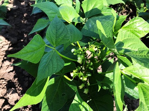 Nach fünf Tagen liefen die Buschbohnen sehr gleichmäßig auf. Die Entwicklung erfolgte durch die günstigen Witterungsbedingungen sehr zügig. Verschlämmungen durch Starkniederschläge während des 2-Blatt-Stadiums konnten durch eine maschinelle Hacke sehr gut beseitigt werden. Bereits 40 Tage nach der Saat befand sich der Bestand in der Vollblüte.