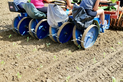 Gelbe Blätter haben mehrere Ursachen. Ein Grund ist Lichtmangel. Diesem begegnet man mit einem größeren Standraum. Reihenweiten von 75 Zentimetern sind für gepflanzte Bestände üblich. Bei der Saat sind 25 bis 30 Zentimeter – also jede zweite Reihe verschlossen – gängig. Die Saat ist bedeutend günstiger als das Pflanzen vorgezogener Setzlinge und die Unkrautunterdrückung einer gesäten Kultur ist ebenfalls besser, wenn sie gleichmäßig aufgeht. Trockenheit und Schädlinge können einem jungen Bestand allerdings in einem solchen Maße zusetzen, dass dieser ausfällt. Die Pflanzung vorgezogener Setzlinge ist zwar teurer, jedoch sehr viel sicherer, was das Etablieren eines gleichmäßigen Bestandes angeht.