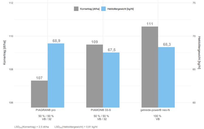 Immer wieder ist unter Praktikern die Befürchtung zu vernehmen, frühe Einmalgaben hätten Einbußen im Hektolitergewicht zur Folge. Die Ergebnisse der Exaktversuche zeigen allerdings stabile Werte über alle Varianten und Jahre.