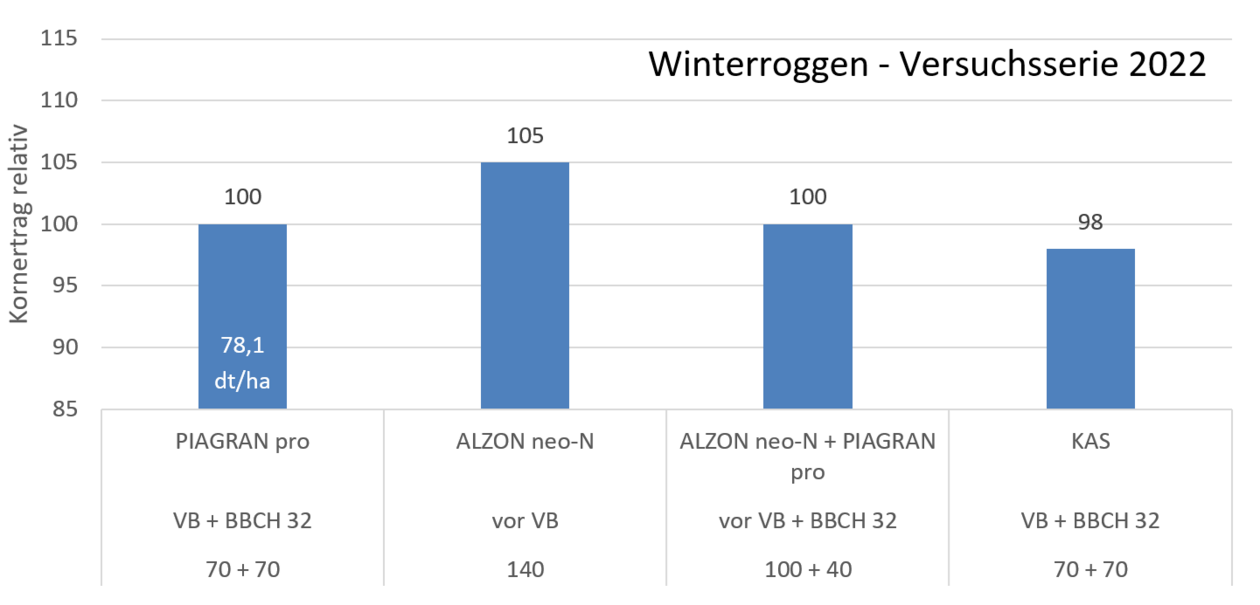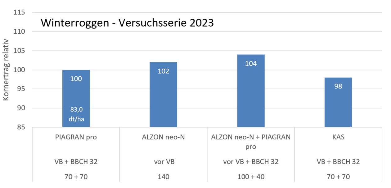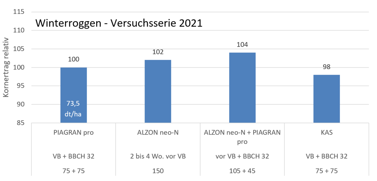 Roggen wird auf leichten Standorten mit geringerer Bodenbonität und häufig auftretender Frühjahrstrockenheit angebaut. Unter diesen Bedingungen ist es in der Regel sinnvoll, einen Großteil des N-Düngebedarfes sehr früh zu verabreichen. Folglich rücken Strategien in den Fokus, bei denen bereits vor Vegetationsbeginn eine hohe ammoniumstabilisierte Start- oder Einmalgabe erfolgt.