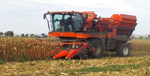 Die Ernte erfolgt im Zeitraum von Anfang September bis Anfang November und beginnt sobald die physiologische Reife abgeschlossen ist. Im Unterschied zum klassischen Körnermais werden beim Saatmais die Körner mitsamt Kolben geerntet. Nur die Lieschblätter werden entfernt. Hierfür ist ein spezieller Kolbenpflücker zur Ernte im Einsatz. Anschließend werden die Kolben ins Maiswerk gebracht und die Körner an der Spindel getrocknet. Diese sind die Grundlage für das qualitativ hochwertige Saatgut, dass bei Ihnen zum Einsatz kommt.