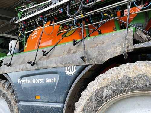 Die Hauptkultur, die das Lohnunternehmen MG Freckenhorst mit Flüssigdünger versorgt, ist somit der Mais im Frühjahr und Sommer. Deutlich seltener wird ein Einsatz im Getreide beauftragt. „Grob geschätzt, versorgen wir in diesem Jahr 250 ha Mais mit AHL, also Ammoniumnitrat-Harnstoff-Lösung. Das kann aber im nächsten Jahr schon wieder ganz anders sein“, sagt Laurenz Friehe.