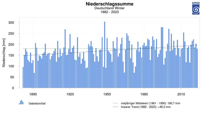 Laut den Berechnungen des DWD werden die Sommer immer trockener und die Winter feuchter (Abb. 1 und Abb. 2). Die Jahresniederschlagssumme bleibt dabei weitgehend unverändert. In diesem Zusammenhang nimmt auch die Zahl der niederschlagsfreien Tage im düngungsrelevanten Zeitraum März bis Mai für die Wintergerste zu. Dadurch wird die Löslichkeit der applizierten Stickstoffdünger beeinträchtigt und die Pflanzenverfügbarkeit kann nicht mehr gewährleistet werden. Besonders schwierig gestaltet sich der Wintergerstenanbau in Regionen, die von einer typischen Frühjahrstrockenheit geprägt werden, wie zum Beispiel im mitteldeutschen Trockengebiet. Vor diesem Hintergrund stellt sich die Frage, wie die N-Versorgung der Wintergerste dennoch sichergestellt werden kann.