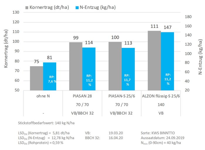 Lediglich Getreide mit mehr als ca. 150 kg/ha Stickstoffbedarf, darunter vor allem Winterweizen, aber auch Wintergerste im Hochertragssegment, benötigt auch bei Anwendung von Nitrifikationsinhibitoren eine in zwei Teilgaben gesplittete Düngung, um höchste Erträge und Qualitäten erreichen zu können.